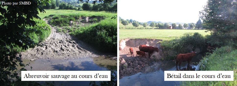 Le piétinement localisé des berges et du lit du cours d'eau par le bétail a de multiples impacts :