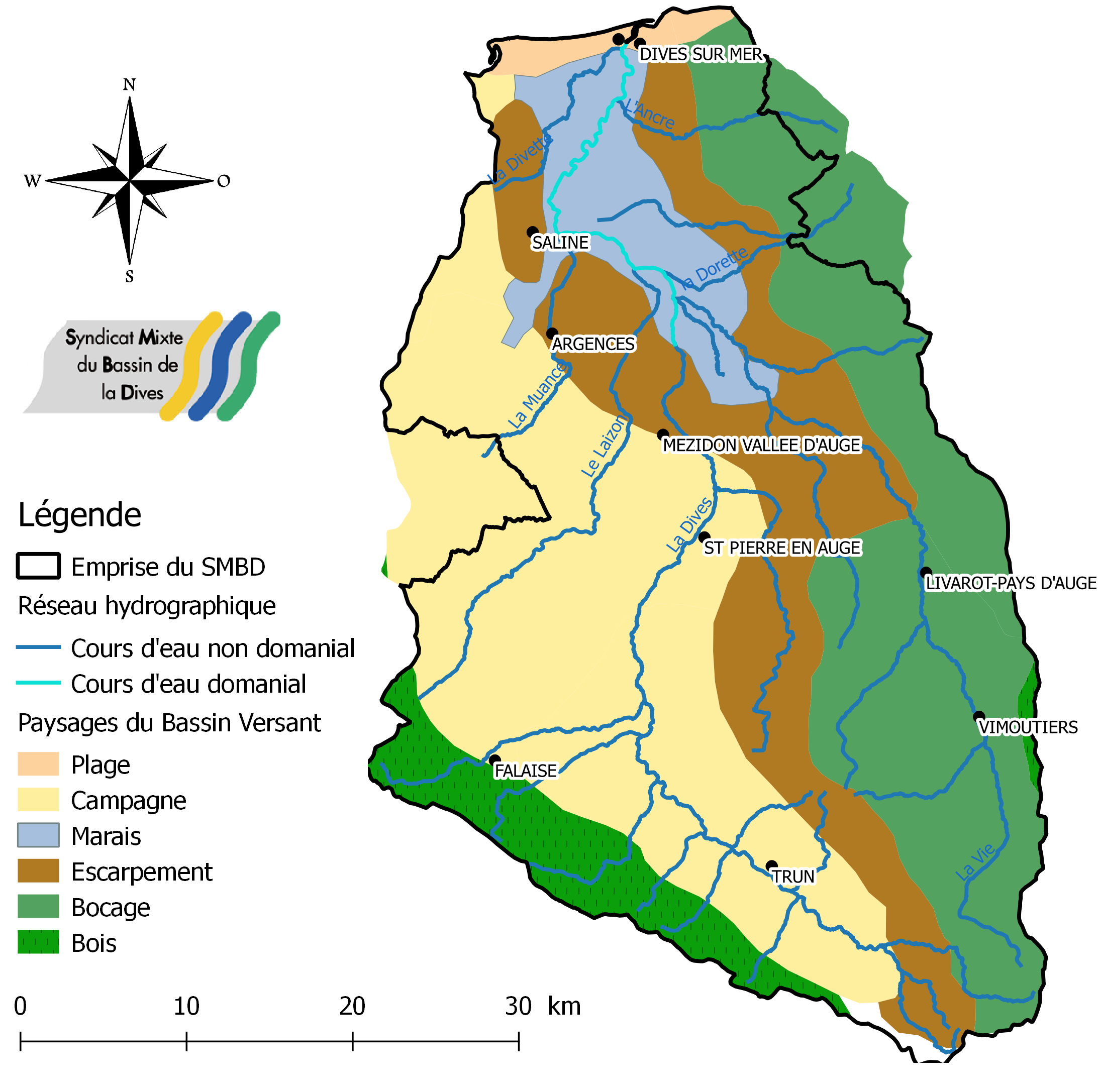 Sur le bassin de la Dives, on retrouve 6 de ces 8 familles de paysages: